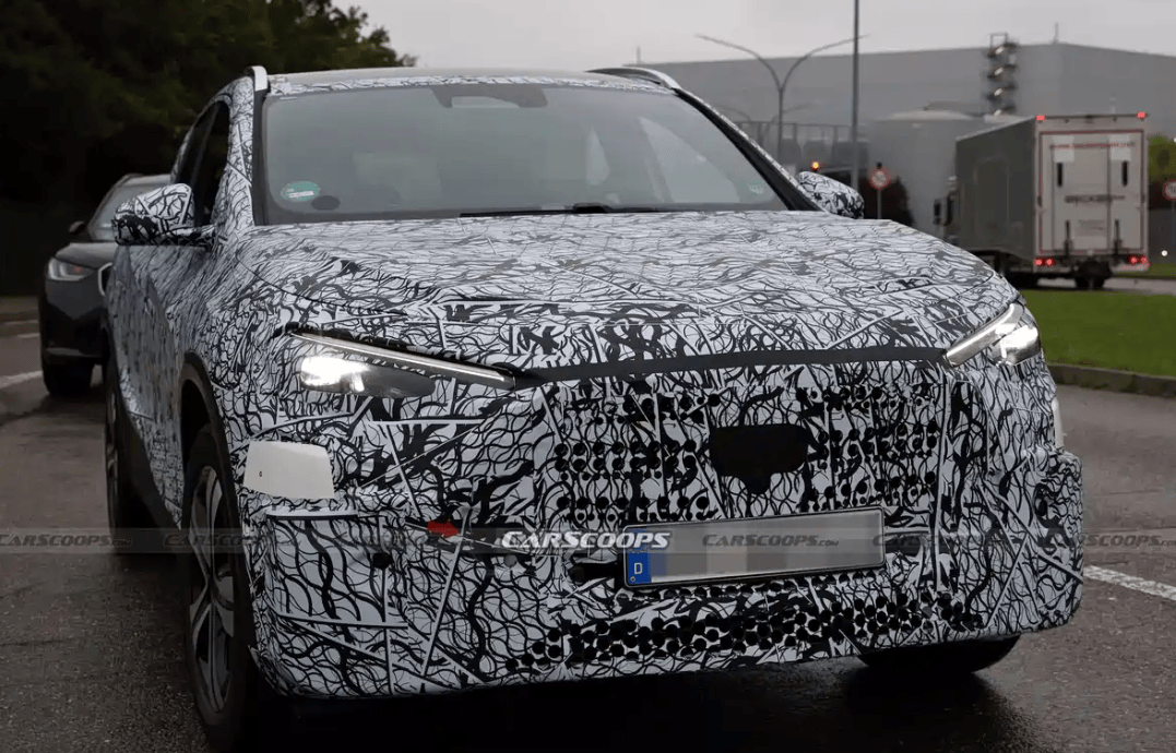谍照显示,新车采用封闭式 “星徽格栅” 搭配贯穿式灯带,前脸线条更具棱角感,LED 大灯组与前保险杠的立体造型形成强烈视觉冲击。车身侧面延续轿跑 SUV 轮廓,隐藏式门把手与低风阻轮毂设计进一步优化空气动力学,风阻系数预计降至 0.26 以下。车尾部分,环绕式尾翼与贯穿式尾灯组强化了未来感,雕刻感尾门设计提升了层次感。