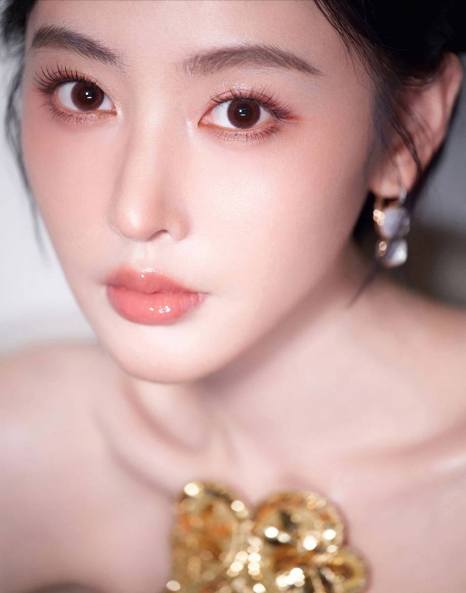 在造型搭配上,张天爱的选择堪称“减法美学”的典范。她没有佩戴繁复的项链,仅以一对梨形钻石耳饰作为点缀,耳饰的璀璨与礼裙的金色相互呼应,既提升了整体的华丽度,又不会分散对礼裙本身设计的注意力。妆容方面,她采用淡雅的裸色系眼妆,重点突出了饱满的正红色唇妆,与金色礼裙形成鲜明却和谐的对比,既提亮了肤色,又增添了几分复古韵味。发型则是将长发侧分,一侧自然垂落肩头,另一侧挽起,露出优美的天鹅颈,整体造型简约而不简单,每一个细节都在为“优雅高贵”的主题服务。